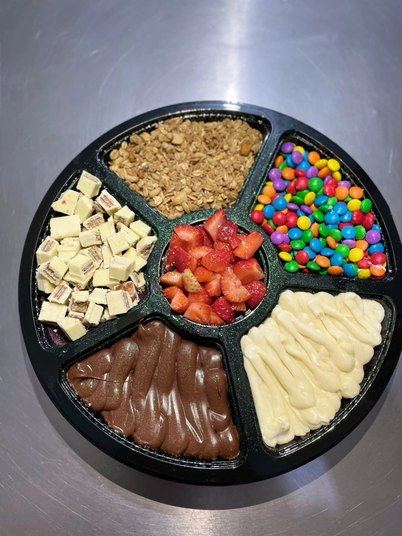 Em média 800ml de Açaí; Acompanha 5 adicionais grátis da sua escolha! Leite Condensado cortesia!